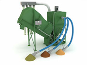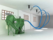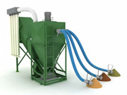 - Fluxul de aer si particulele de praf in suspensie rezultate in urma macinarii se filtreaza si decanteaza in cele patru filtre verticale, astfel acest praf se poate reintroduce in malaxor fara pierderi.