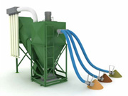 - Modul de lucru este foarte simplu, aspersia materiei prime se face pneumadic din buncare printr-un furtun flexibil pe o raza de pana la 8 m de moara.